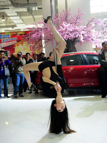 > 车展上惊现辣妹钢管舞 惊艳表演(图)(3)